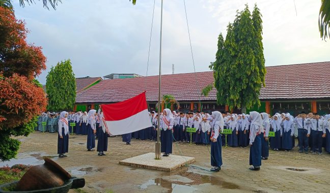 Sambut Semester Baru, MTsN 1 Muba Laksanakan Upacara Bendera Perdana di Awal Semester Genap