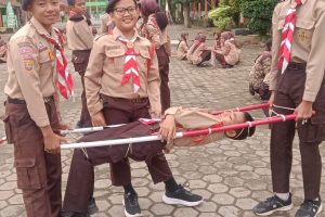 Belajar Sigap dan Peduli: Siswa MTsN 1 Muba Praktik Pembuatan Tandu Darurat dan Simulasi Evakuasi