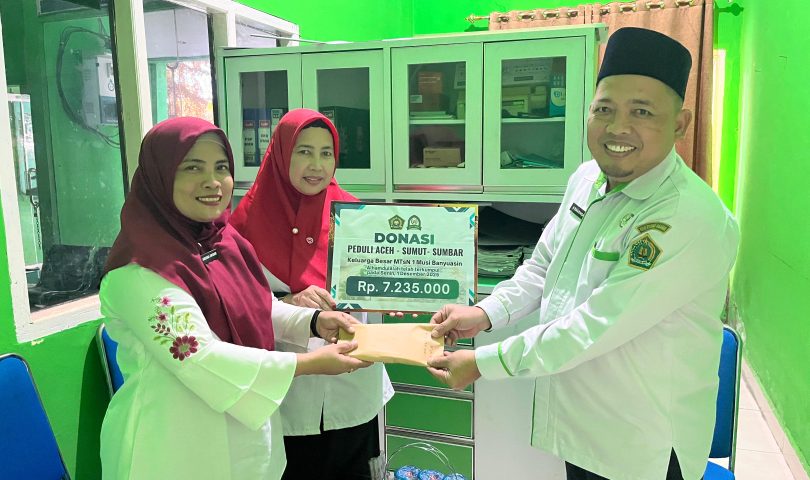 Sekayu (Kemenag Sumsel) — Sebagai wujud kepedulian terhadap saudara-saudara yang terdampak bencana alam di Aceh, Sumatera Utara, dan Sumatera Barat, MTsN 1 Musi Banyuasin menggelar kegiatan penggalangan donasi pada Senin (01/12/2025). Kegiatan ini diikuti oleh seluruh peserta didik, tenaga pendidik, serta tenaga kependidikan.
