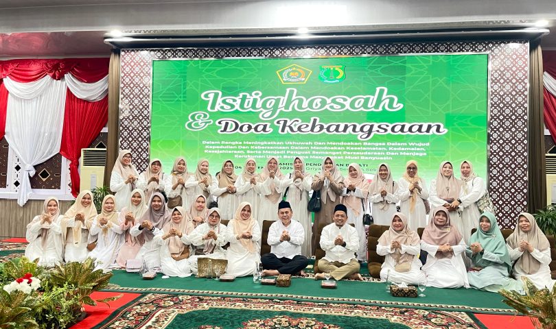Sekayu (Kemenag) — Keluarga besar MTs Negeri 1 Musi Banyuasin yang terdiri dari tenaga pendidik dan kependidikan mengikuti kegiatan istighosah dan doa kebangsaan yang dilaksanakan di Pendopoan Bupati Griya Bumi Serasan Sekate pada Kamis (04/09/2025) malam.