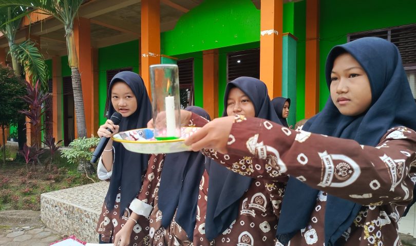Kegiatan literasi yang dilaksanakan pada hari ini diisi dengan demonstrasi hasil percobaan dari siswa perwakilan kelas VII.F di bawah bimbingan sang wali kelas, Nila Mutiara, S.Ag.